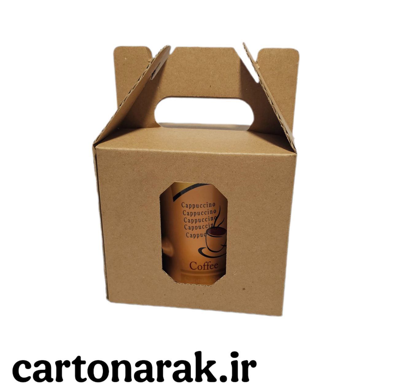 کارتن دسته دار پنجره دار (کارتن ماگ) ابعاد ۱۲.۵ در ۹.۵ با ارتفاع ۱۱.۵ جنس کارتن سه لایه ایفلوت درجه یک و مقاوم قابل چاپ تک رنگ از ۱۰۰ عدد قابل تولید در ابعاد اختصاصی شما از ۵۰۰ عدد