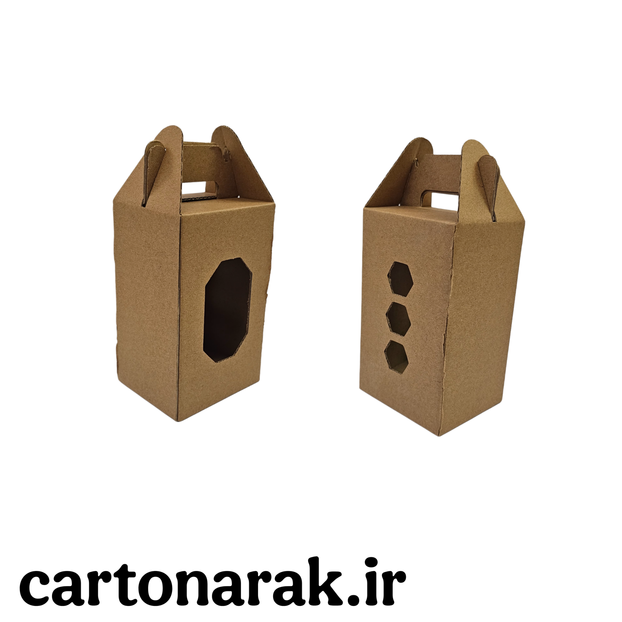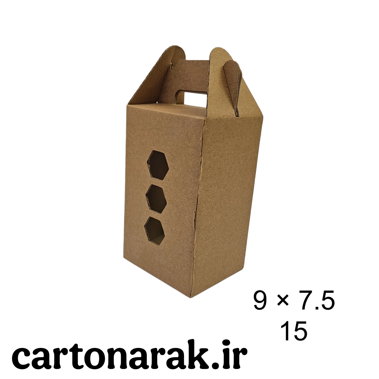 کارتن ایفلوت درجه یک و مقاوم دسته دار پنجره ای مماسب برای لیوان و ظرف عسل و... ابعاد کف ۹ در ۷.۵ سانت و ارتفاع ۱۵ سانتی متر(بدون حساب دسته) قابل چاپ تک رنگ از ۱۰۰ عدد