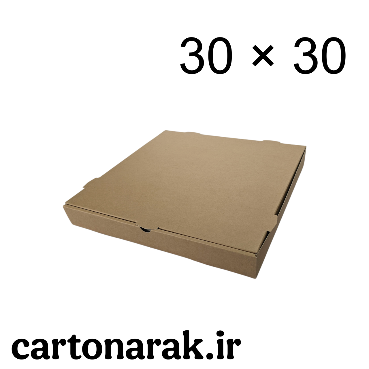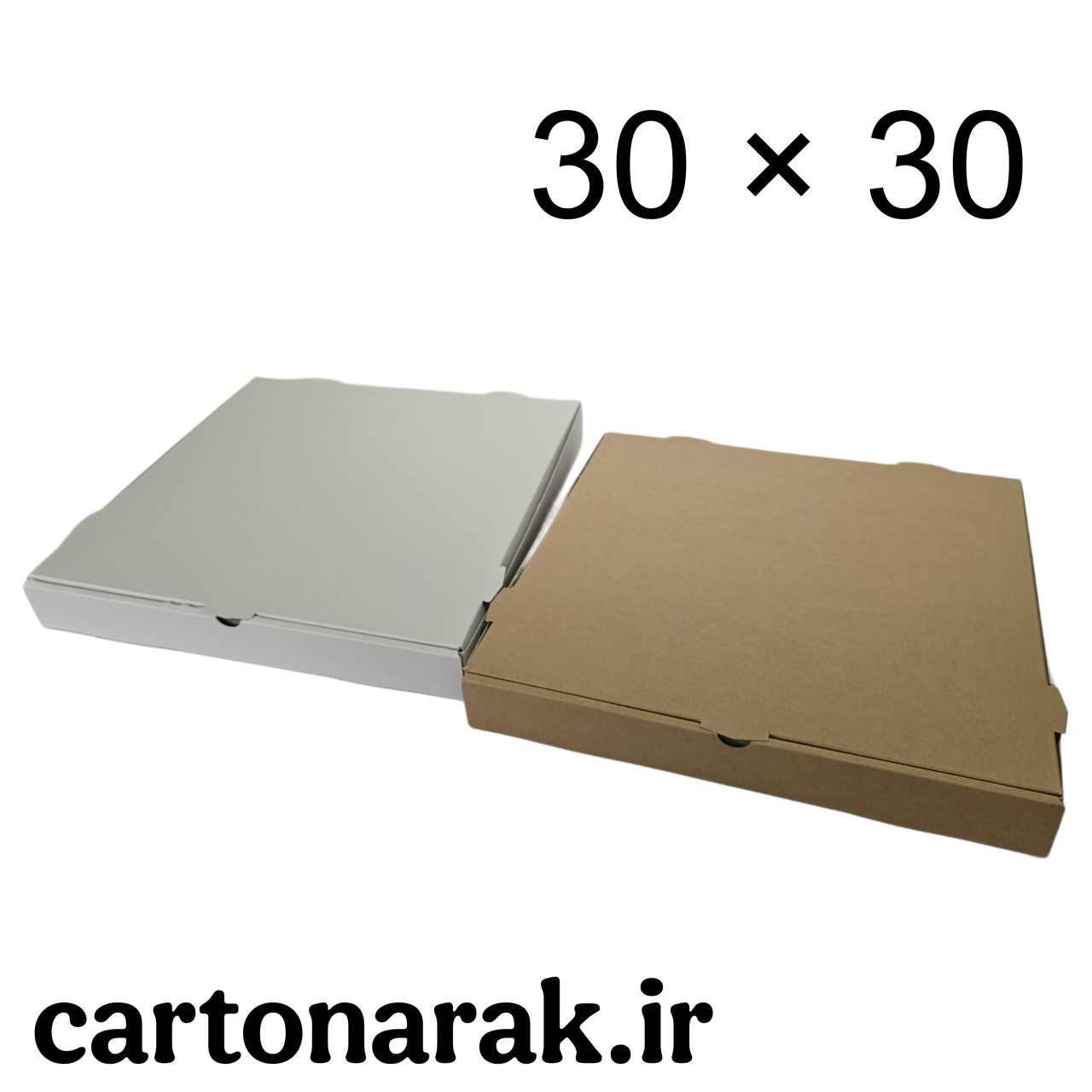 جعبه پیتزای ۳۰.۵ در ۳۰.۵ سانتی متر با ارتفاع ۴ با درجه یک ترین مقوای بهداشتی داخل ایران، روکش کرافت و سفید مناسب برای پیترای خانواده قابل چاپ از ۳۰۰ عدد